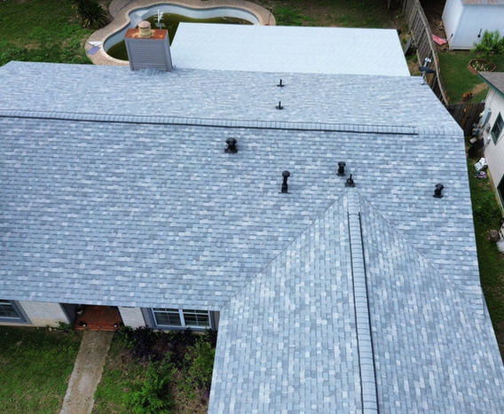 Gray Owens Corning Asphalt Shingle Roof – Roof replacement in San Antonio following storm damage. Owens Corning gray asphalt shingles installed under an approved insurance claim.